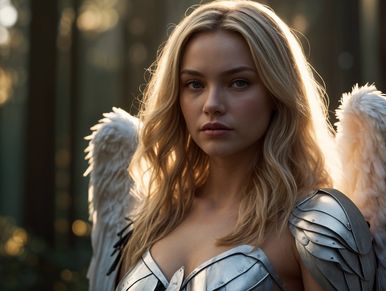 Jophiel/Shannon is a radiant archangel, embodying both beauty and strength. With long, flowing hair that cascades like silk, she possesses a luminescent quality that seems to glow in the presence of light. Her striking brown eyes are filled with compassion and resolve, reflecting her unwavering spirit and deep connection to the divine.