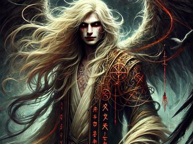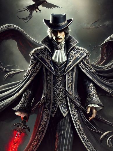 Dressed in rich fabrics that shift between shadows and light, his garments feature deep hues of black, purple, and crimson, enhancing his dark allure. Intricate patterns adorn his clothing, reminiscent of ancient symbols that speak to his mastery of the arcane.